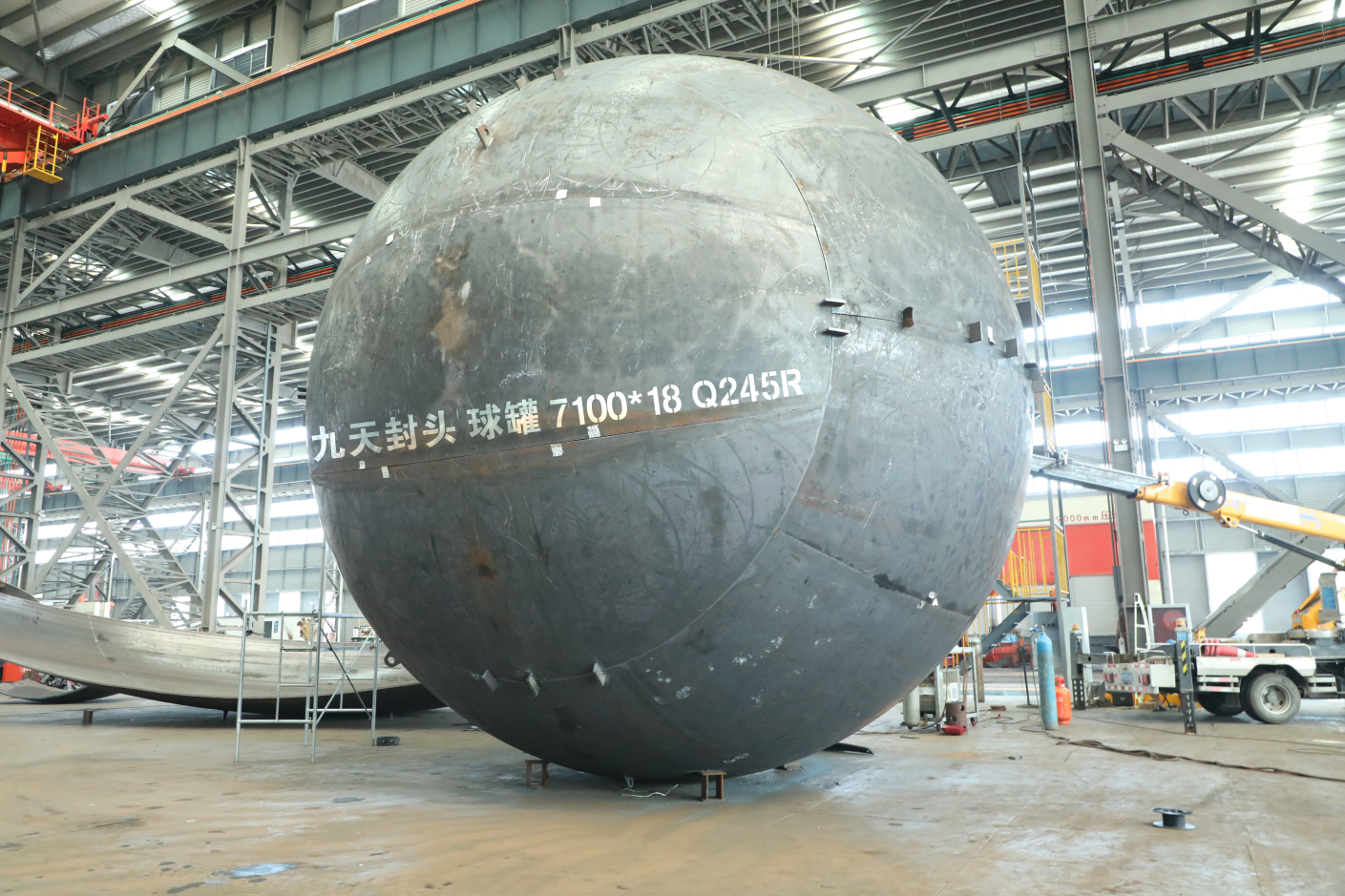 近日,河南九天封頭制造有限公司憑借卓越的技術實力與不懈的創新精神,成功制作出一款規格為7100*18、材質為Q245R的整球封頭。該封頭作為200m3氮氣球罐的關鍵部件,不僅彰顯了九天封頭在大型封頭制造領域的深厚底蘊···